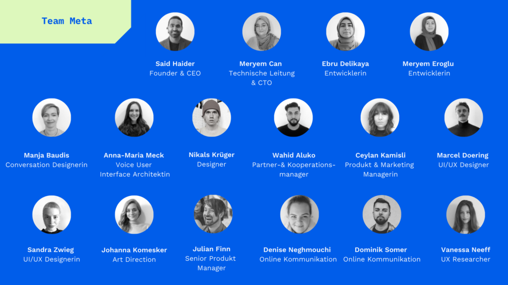 2019 habe ich einen ersten Hackathon ausgerichtet [bei einem Hackathon kommen Softwareentwickler*innen zusammen, um gemeinsam an der technischen Lösung eines gegebenen Problems zu arbeiten], um Menschen für das Projekt an Bord zu holen. Am 8. Februar 2021 haben wir dann den Prototypen des Chatbots gelauncht. Mittlerweile sind wir drei Hauptamtliche und 15 Ehrenamtliche im Team. Dabei steht an erster Stelle für den Erfolg von Meta die Diversität unseres Teams. Diversität schafft diverse Perspektiven und Meinungen.