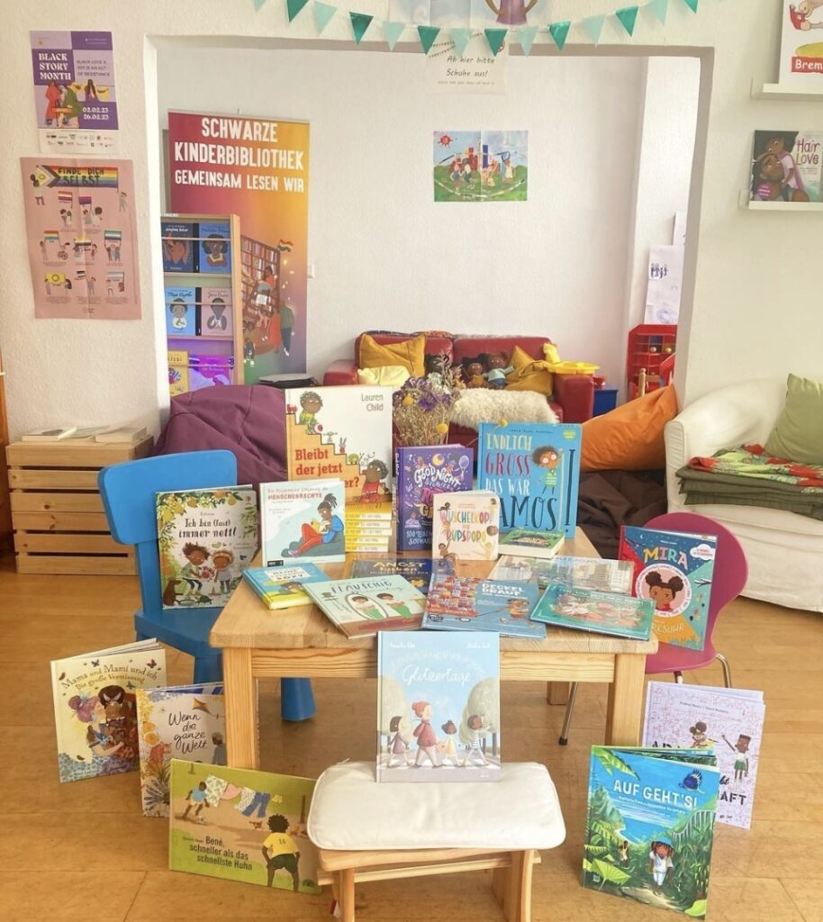 Inspiriert zur SchwaKiBi wurde Sheeko 2021 während einer Bildungsreise in Frankreich. Seit Januar 2023 hat die Bibliothek ihre eigenen Räume im Bremer Viertel. Heute ist die Schwarze Kinderbibliothek nicht nur ein Ort zum (Vor)lesen, sondern auch für Workshops, Vernetzung und Lesungen. Die Bücher können vor Ort gelesen oder kostenlos ausgeliehen werden – „Wir arbeiten auf Vertrauensbasis“, erklärt Sheeko. Einen Ausweis braucht man nicht, nur ein Kontaktformular. So soll auch Menschen ohne Papiere ermöglicht werden, Bücher mit nach Hause zu nehmen. „Das funktioniert bisher auch super so“, sagt Sheeko lächelnd.