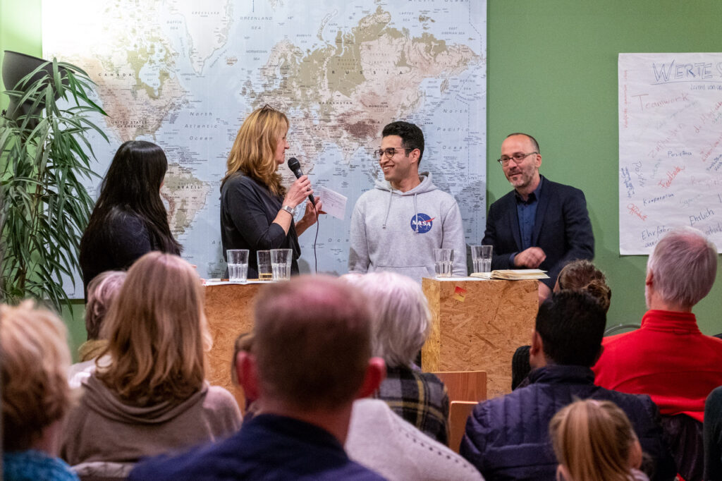 Für die größtenteils deutschen Gäste der Podiumsdiskussion war es erstaunlich zu hören, dass die beiden Geflüchteten bisher keine Situation in Deutschland erlebt hatten, in der ihnen mangelnde Toleranz von Seiten der Deutschen entgegengebracht worden war.